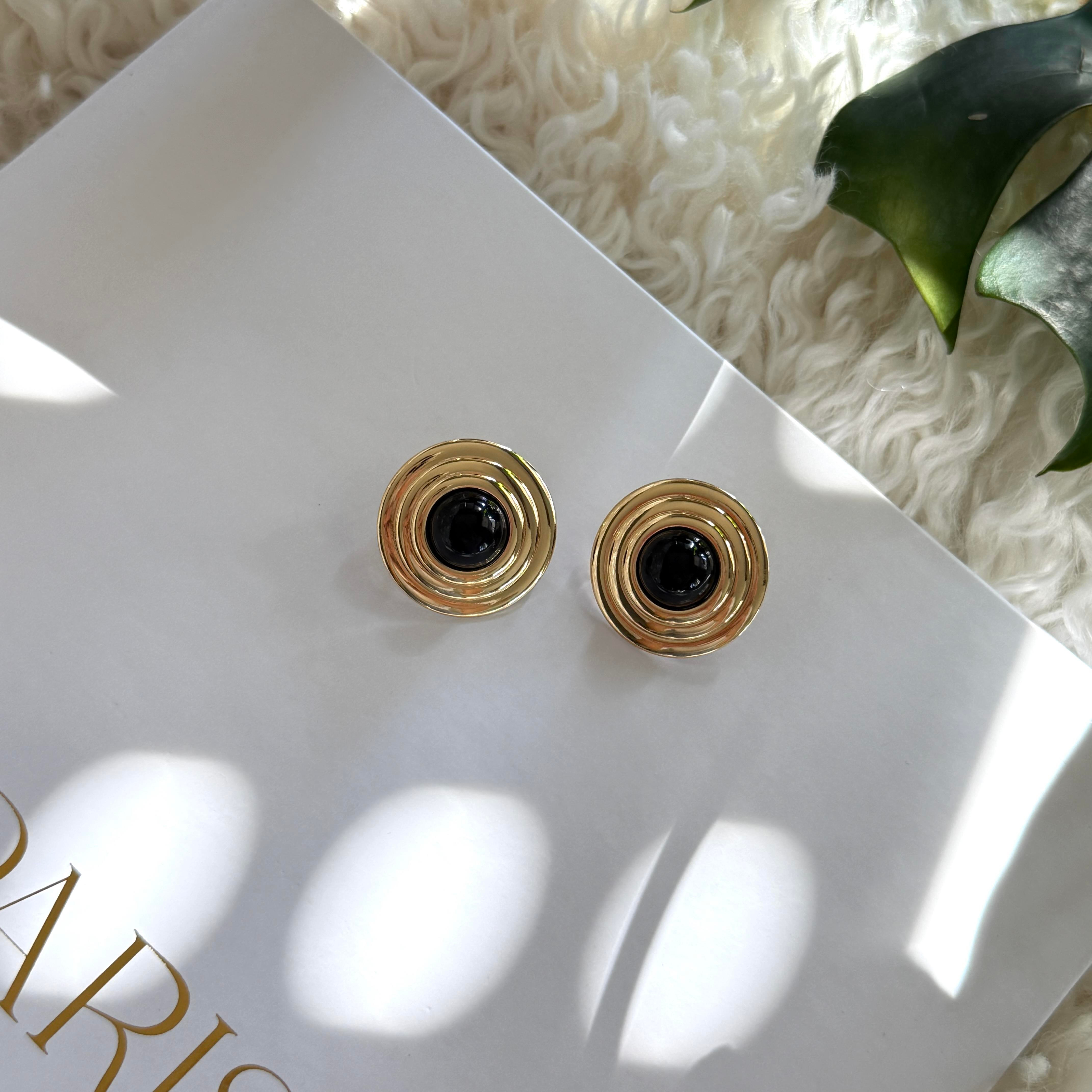 Siyah Mineli Bombeli Yuvarlak Küpe