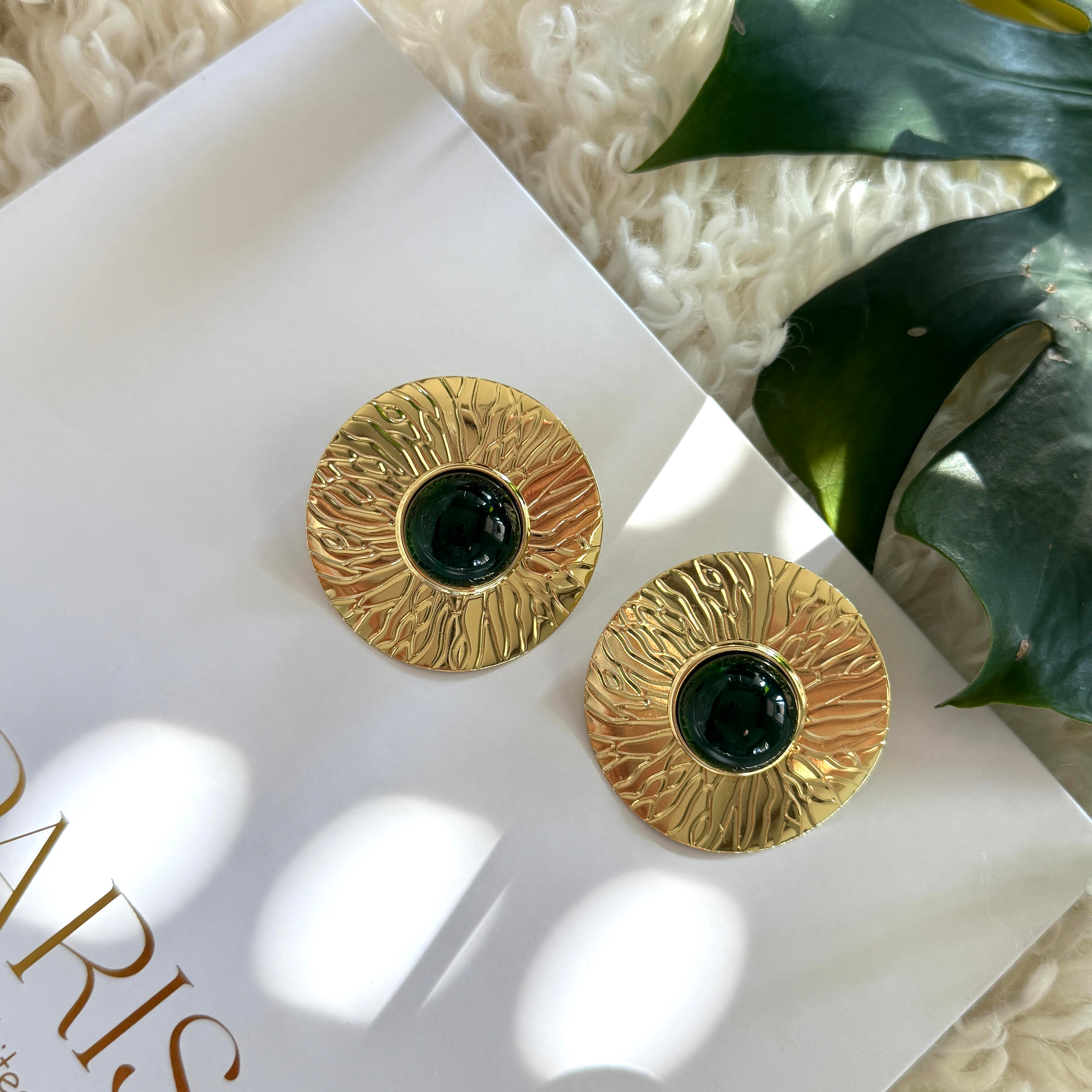 Yeşil Mineli Ezme Yuvarlak Küpe
